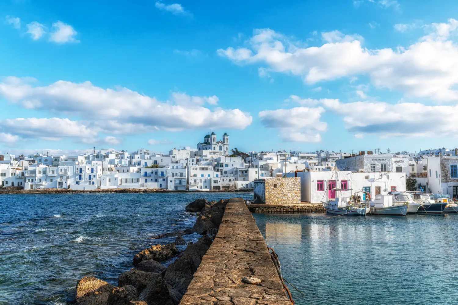 Paros, a sun-washed jewel of the Cyclades, moves at a relaxed yet irresistibly vibrant pace. Known for its whitewashed villages, golden beaches, and crystalline waters, the island blends timeless Greek tradition with an easygoing modern charm. Stroll through the winding lanes of Parikia and Naoussa, where ancient ruins sit beside lively cafés and fishing harbors glow at dusk. From the marble-clad Church of Panagia Ekatontapiliani to the quiet beauty of hilltop villages like Lefkes, Paros invites slow exploration and unhurried discovery. Days unfold between swimming in turquoise coves, savoring long seaside lunches, and watching the Aegean shimmer under the afternoon sun. As evening falls, the island comes alive with soft lights, warm breezes, and convivial tavernas by the water. Whether you’re seeking laid-back beach days, scenic walks through traditional villages, or a taste of authentic Cycladic life, Paros offers a deeply memorable island escape.