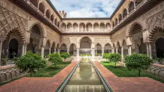 The Seville Alcázar, a UNESCO World Heritage site, is a stunning blend of Mudéjar, Gothic, Renaissance, and Baroque architecture. Originally a 10th-century fortress, it features the exquisite Patio de las Doncellas, the grand Salón de Embajadores, and lush, expansive gardens.