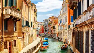 Spanning the Grand Canal since the 16th century, the Rialto Bridge is Venice’s most recognized crossing. Its 75-foot-wide stone arch links the San Marco and San Polo districts and replaced a wooden bridge that famously collapsed under a wedding crowd. Now standing on 12,000 wooden pilings, it's surrounded by shops and restaurants and frequently featured in classic gondola photos. For a scenic and inexpensive view from the water, hop aboard Vaporetto Line 1 and glide beneath its arch.